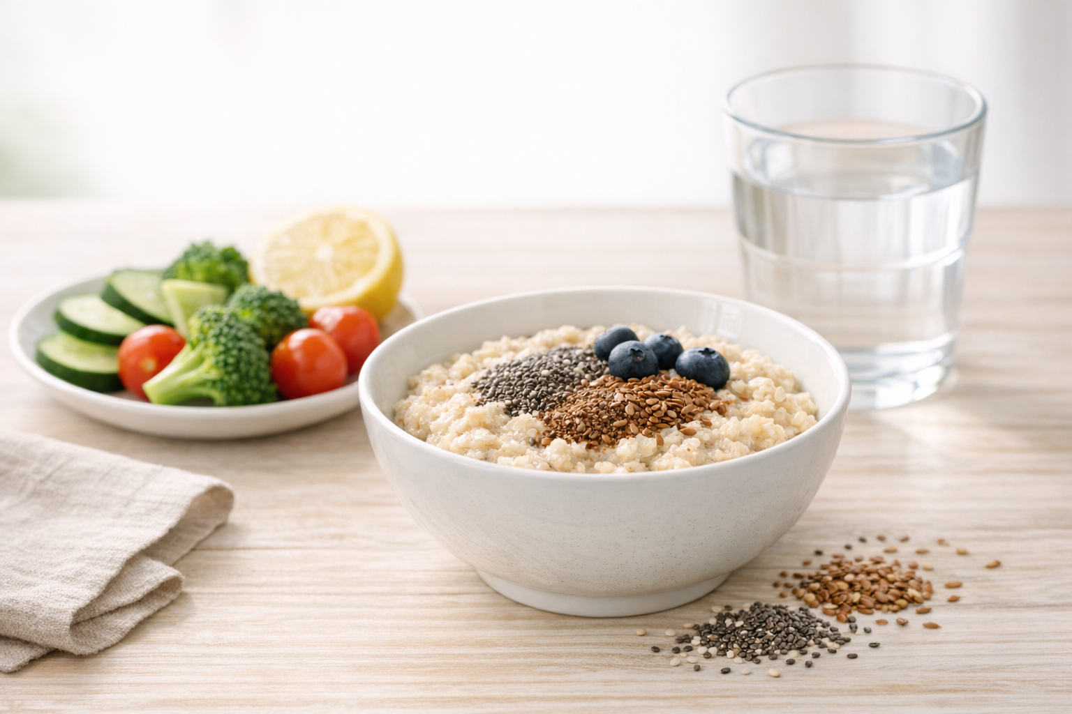 Začni pri raňajkách. Ak je cieľom podpora mikroflóry a pravidelnosti, vhodné sú ovsené vločky, chia semienka alebo ľanové semienka. Obsahujú rozpustnú vlákninu, ktorá viaže vodu a podporuje tvorbu mastných kyselín s krátkym reťazcom v hrubom čreve. Dôležité je začínať menším množstvom a postupne zvyšovať dávku.