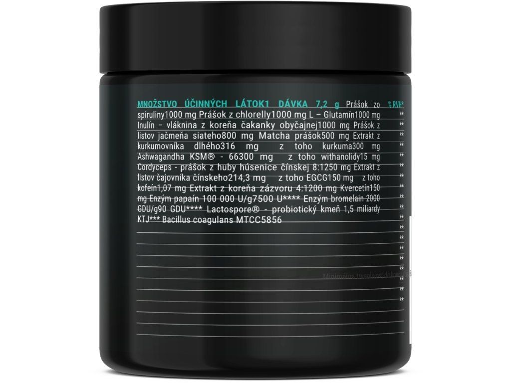 Tretiu vrstvu tvoria rastlinné extrakty ako ashwagandha KSM-66®, cordyceps, zelený čaj, kurkuma, zázvor a kvercetín. Táto vrstva dopĺňa produkt o širší rastlinný komplex, ktorý presahuje samotný „greens“ základ.